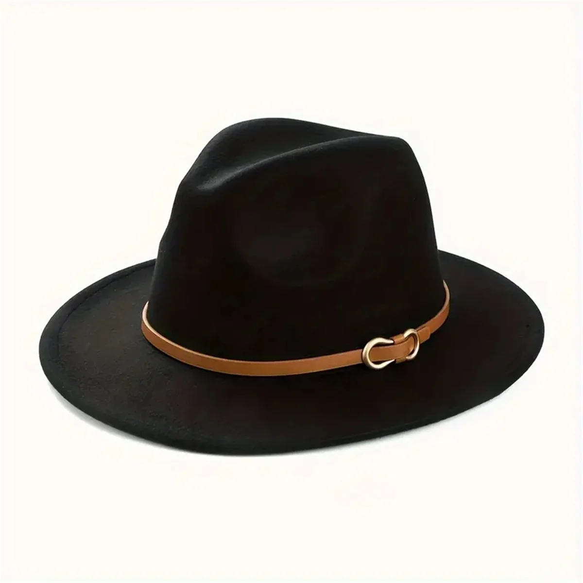 Unisex Ganzjahres Retro Flachkrempen-Hut – Schwarzer Jazzhut aus Filz mit Gürtel, Casual Fashion für Herren & Damen