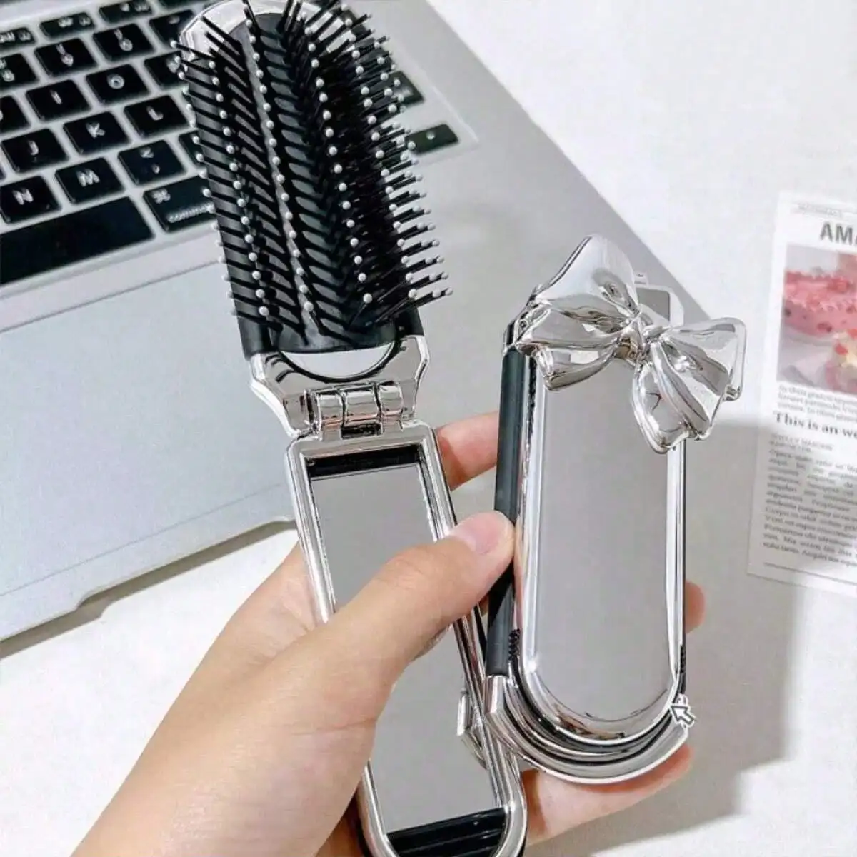Tragbarer Kompaktkamm mit Luftkissen & Make-up Spiegel – Reise-Haarbürste für Alltag & Styling