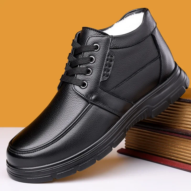 Herren Winterstiefel aus Leder – Wasserdicht & Rutschfest | Gefütterte Warme Baumwoll-Stiefeletten für Arbeit & Outdoor