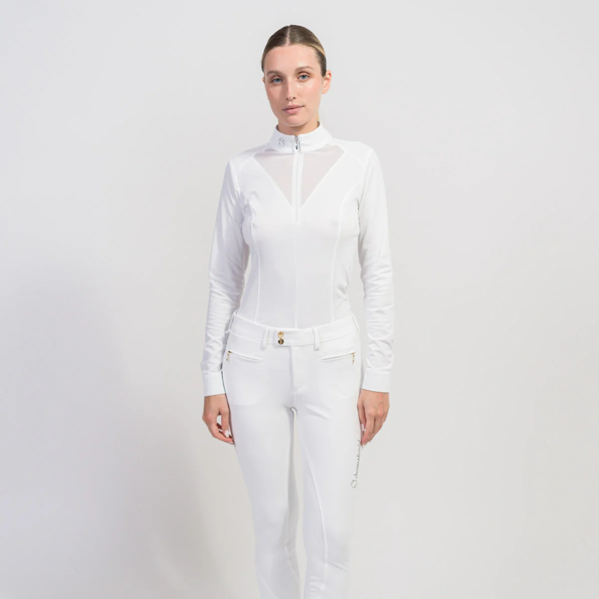 Samshield Damen Langarmshirt Jordana – weiß ton in ton & schwarz/champagne