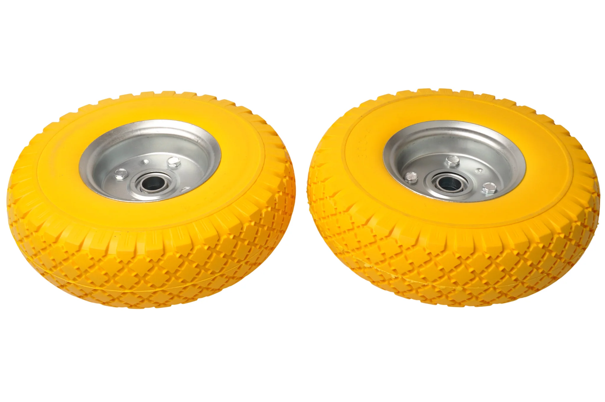 Komplettset aus zwei hochwertigen pannensicheren Sackkarrenrädern mit grauer Stahlfelge. So können Sie beide Reifen günstig auf einmal ersetzen. Besonders attraktiv im Duo-Deal!