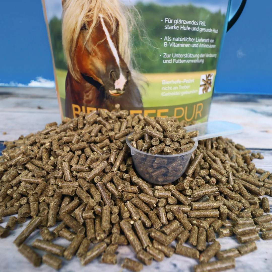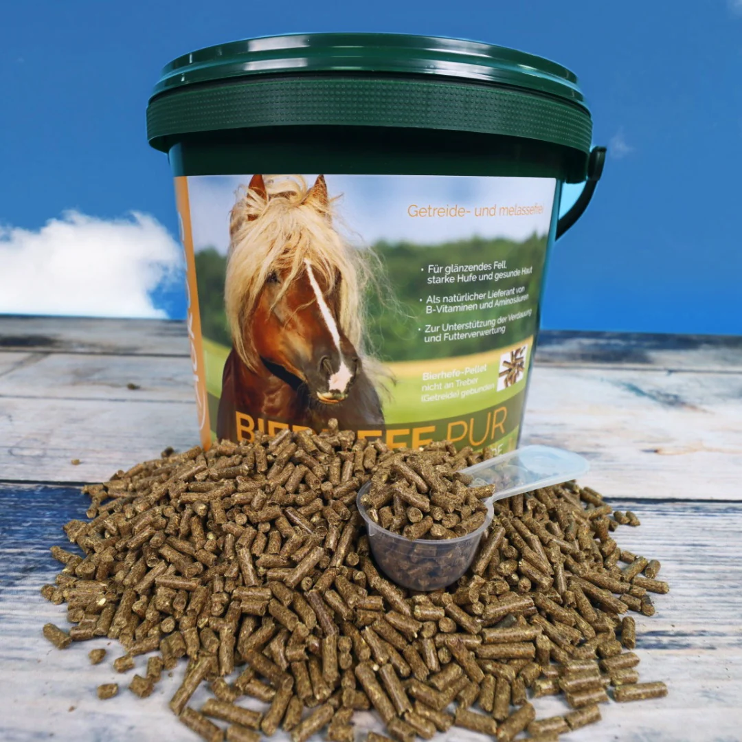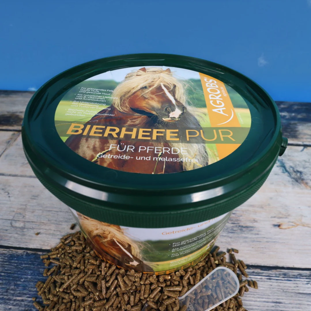 Die AGROBS Bierhefe Pur ist eine tolle getreidefreie Alternative zur Futteraufwertung. Die Bierhefe ist ein Ergänzungsfuttermittel welches zu jeder Fütterung passt und schmeckt. Außerdem liefern die Pellets natürliche B-Vitamine und Aminosäuren, sorgen für eine gute Verdauung und machen Fell, Hufe und Haut wunderschön!