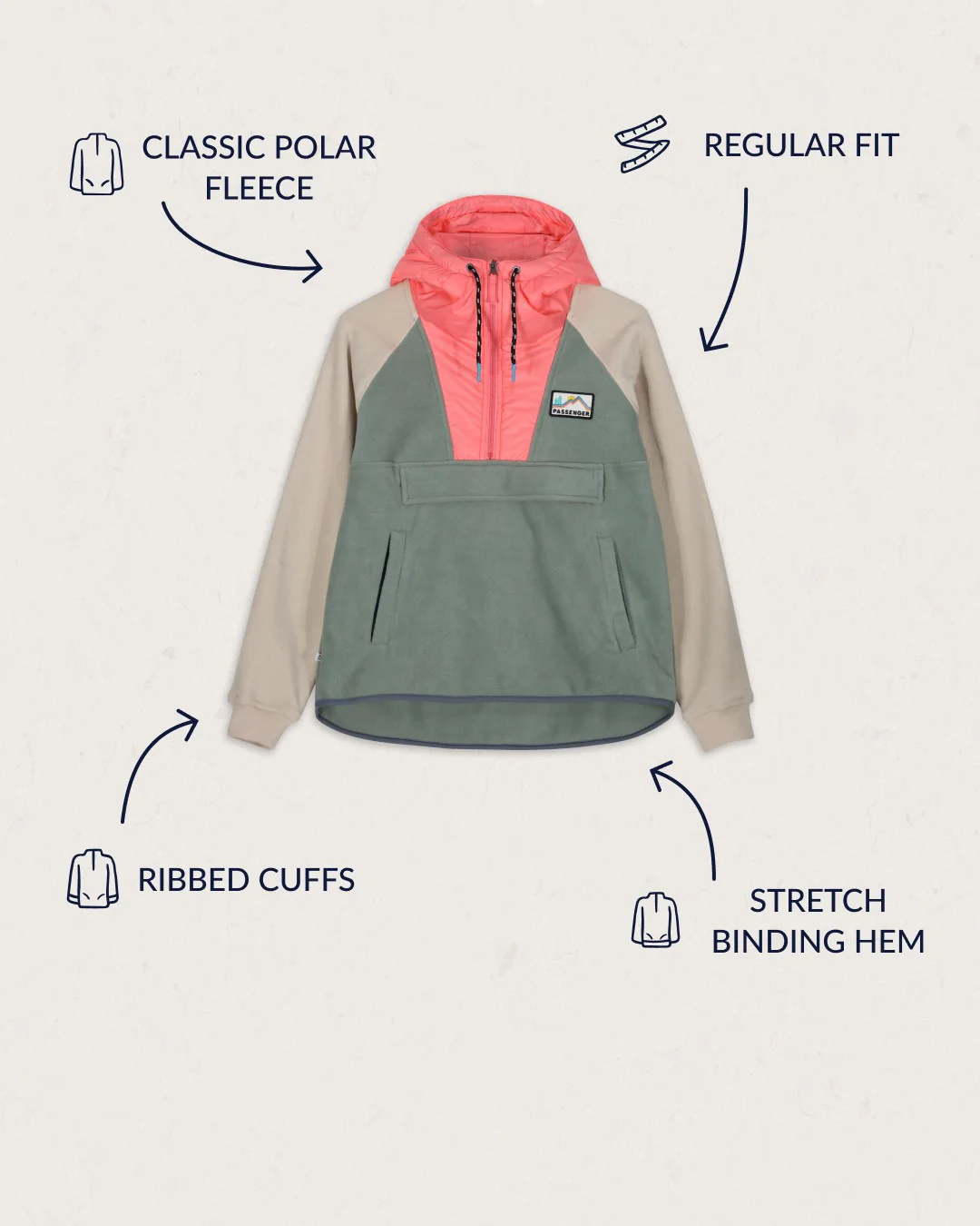 Der Alexander Hooded 1/2 Zip Fleece hat beides, kombiniert old school Farbakzente und Stil mit bis jetzt 100% recyceltem Polar Fleece, damit du und dein Gewissen gut aussehen und sich gut fühlen können. Er ist auch super warm und gemütlich, perfekt für die kalten Tage draußen in der Wildnis.