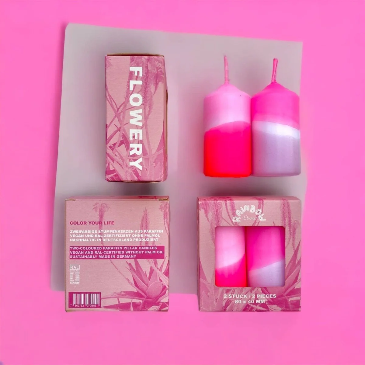 Größe je Kerze: ca. 1,5 x 1,5 x 10 cm