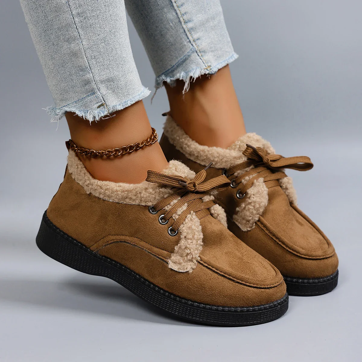 Diese Kunstfell Baumwollschuhe passen perfekt zu Jeans, Leggings oder Freizeitkleidung – ideal für den täglichen Gebrauch.