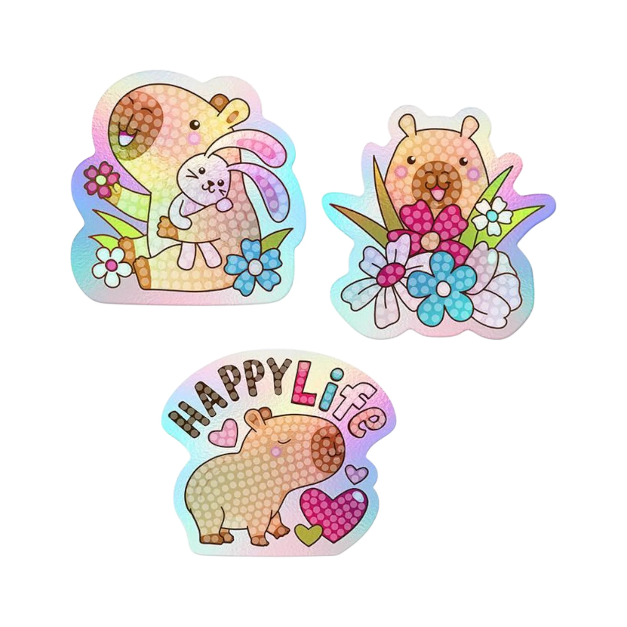Kreiere deine wunderschönen Diamant-Sticker mit Glitzereffekt! Mit diesem kreativen Set entstehen funkelnde Capybara-Sticker, die mit bunten Glitzersteinen verziert werden.