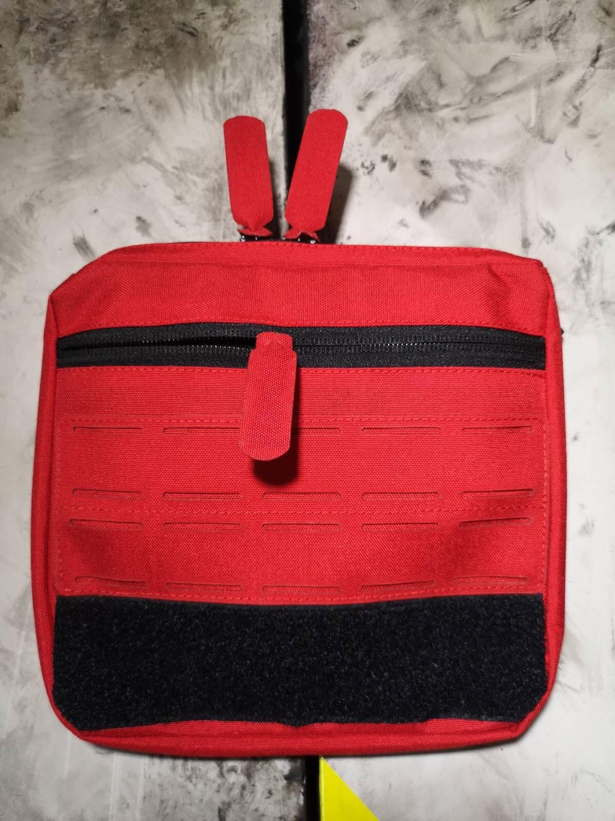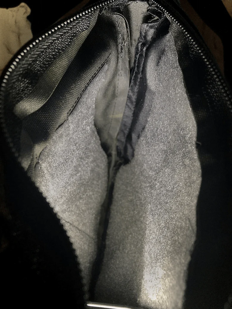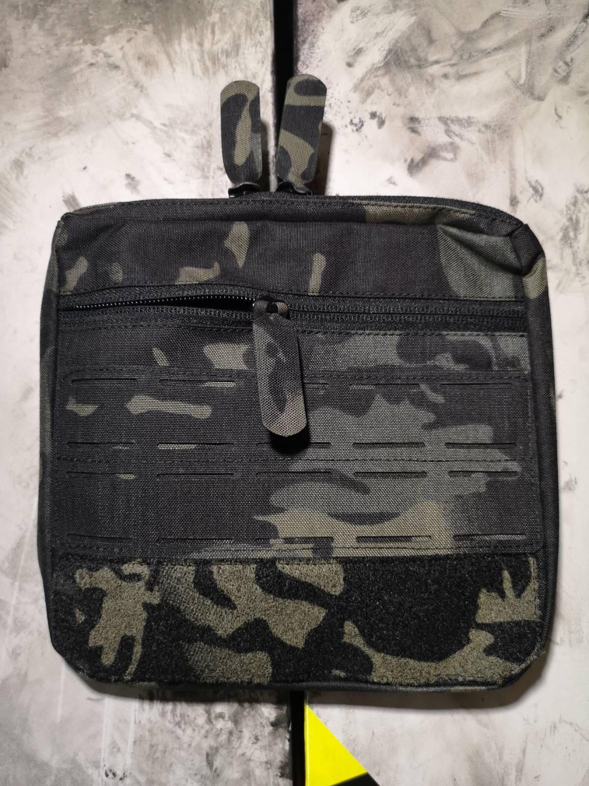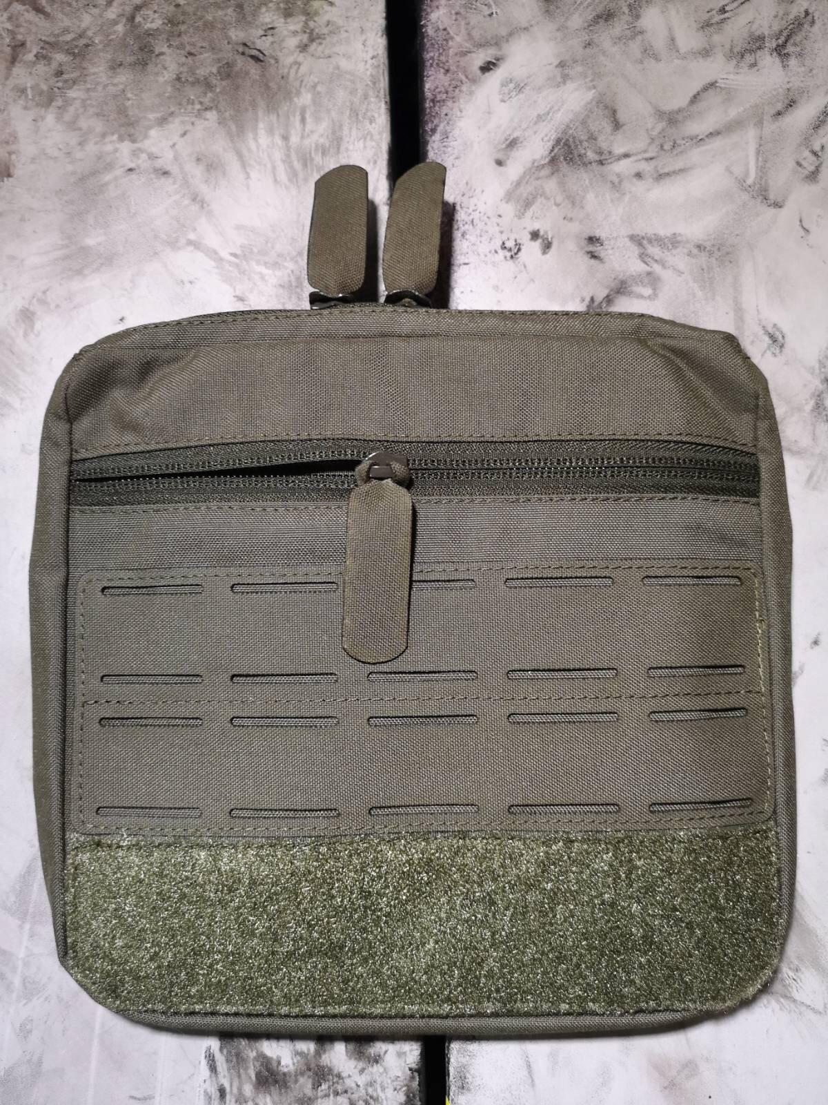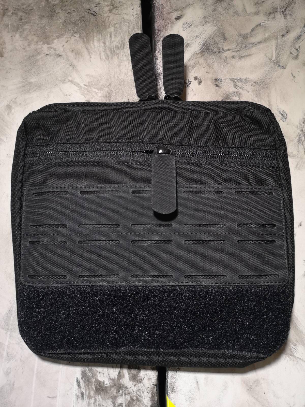 Vor dem Hauptfach ist ein sekundäres Fach aufgesetzt, diese ist ohne Flauschklett um sie besonders flach anliegen zu lassen.