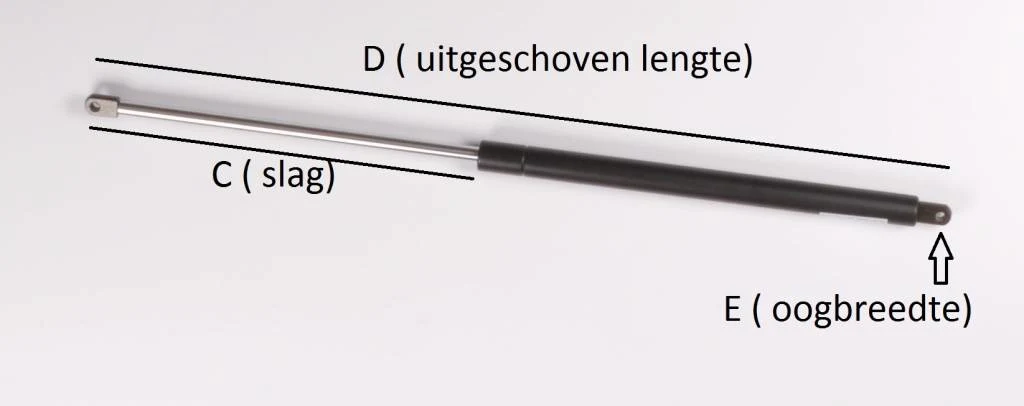 Die Gesamtlänge dieser Gasfeder wird von Mitte zu Mitte gemessen.