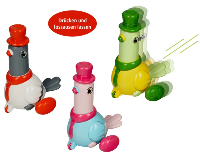 Herr Taube (Press n Go) sorgt für unterhaltsame Action. Einfach aufstellen, den Mechanismus drücken – und schon startet die Taube ihre kleine Bewegung. Mit 3 verschiedenen Designs bringt dieses Spielzeug Spaß und Bewegung ins Kinderzimmer..