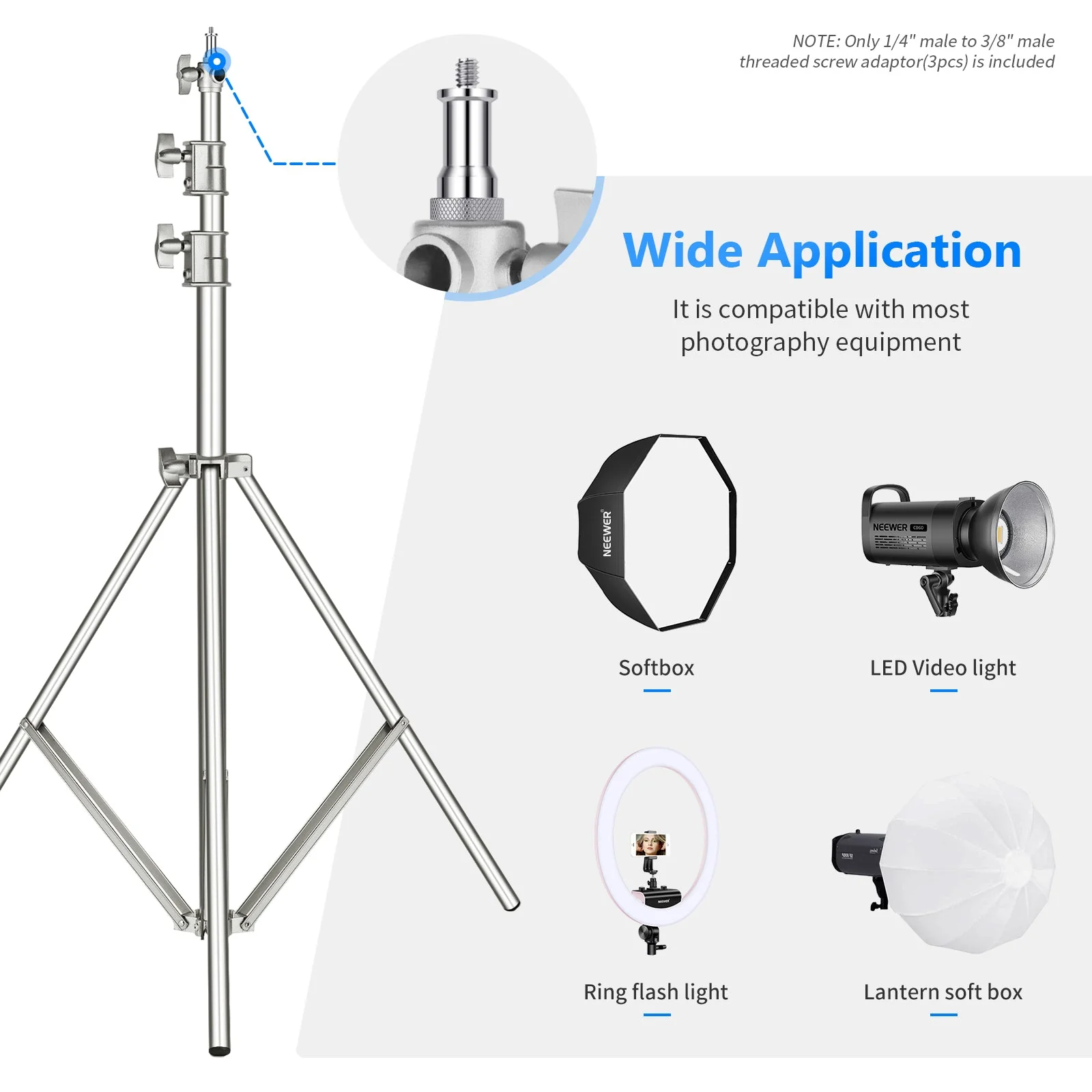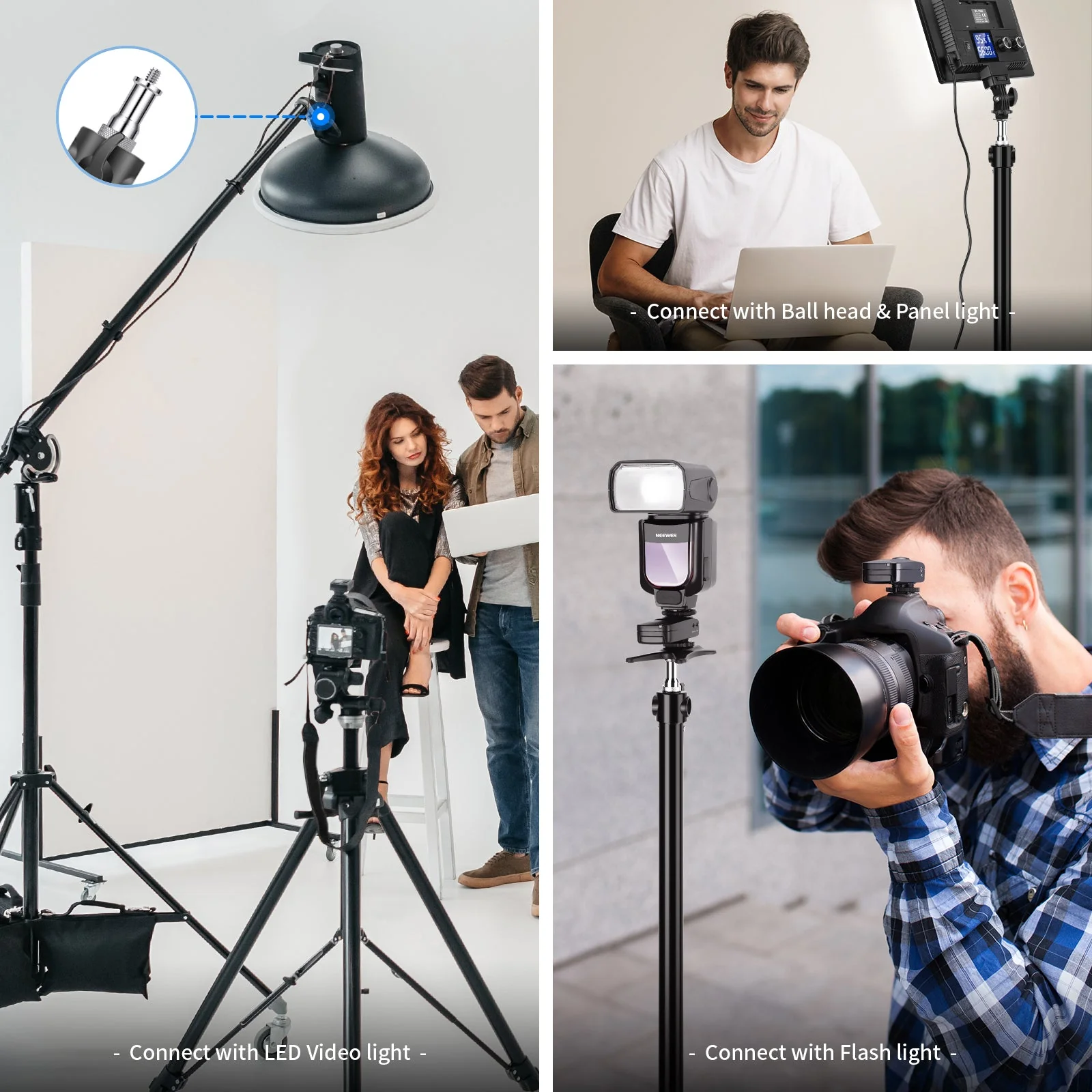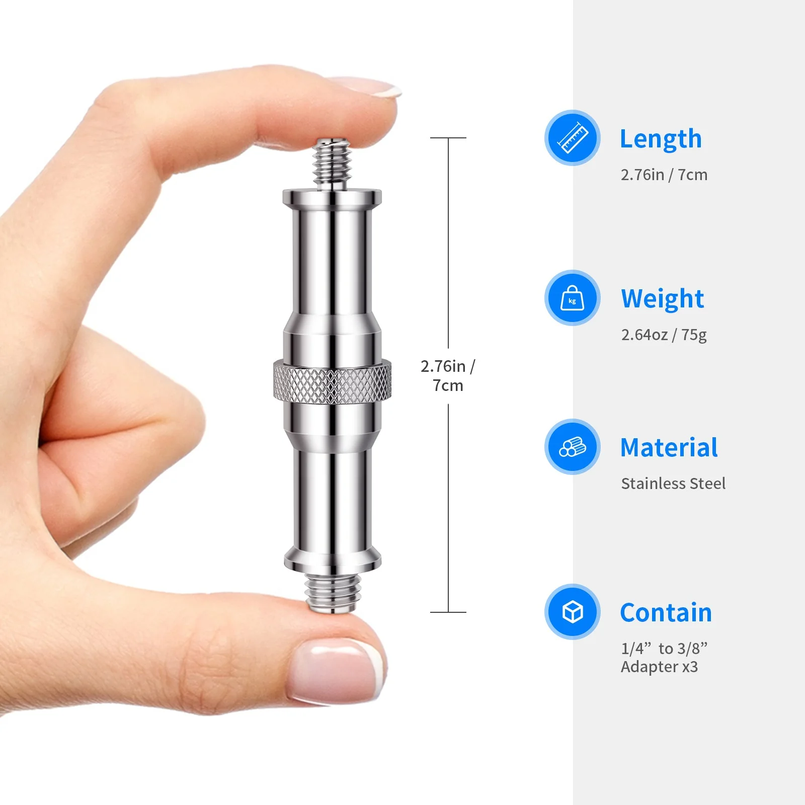 - 【1/4″ auf 3/8″ Adapter】 Ermöglicht den Anschluss einer Vielzahl von Fotozubehör, wie Studiolichtstative, Blitzschuh- und Kaltschuh-Adapter, Kugelköpfe, Funk Blitzempfänger und Auslöser und mehr