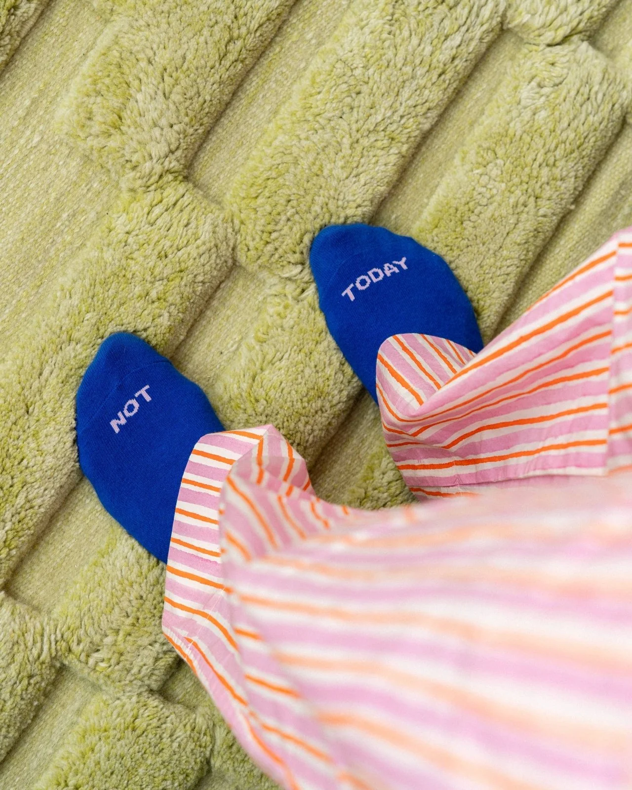 Keine Pläne, kein Stress – diese weichen Socken in knalligem Blau begleiten dich durch langsame Tage und gemütliche Morgen.