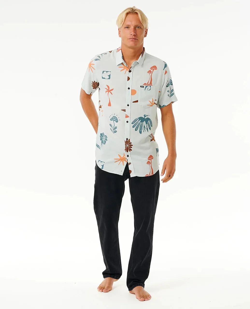 Das Party Pack Kurzarm-Shirt kommt mit einer Fronttasche, Allover-Print und einem gewebten Markenschildchen für ein elegantes und unbeschwertes After-Surferlebnis. 😉