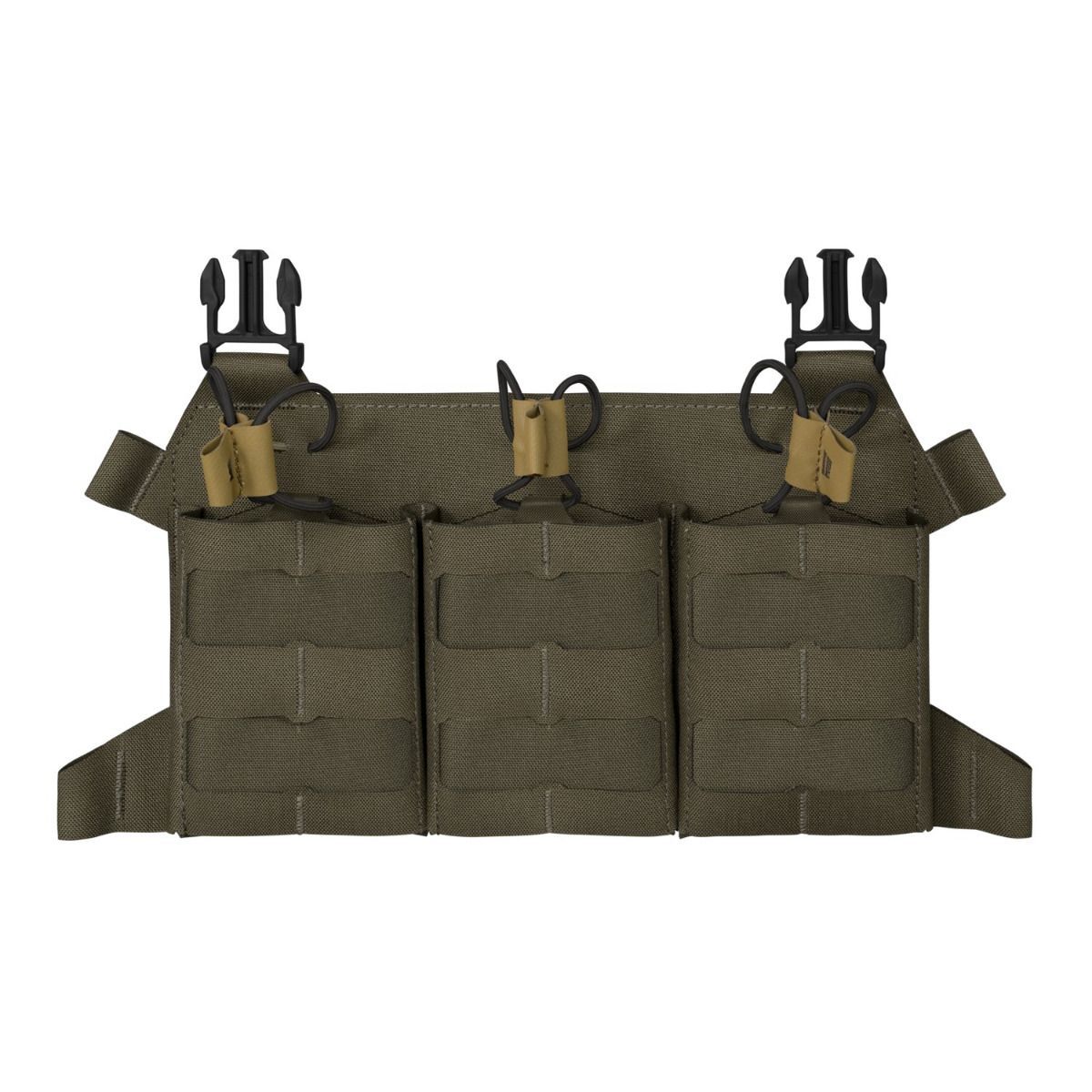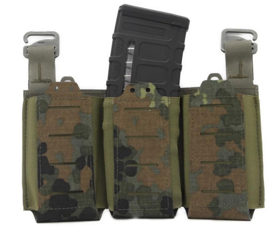 Direct Action bringt eine noch leichtere Serie raus und hat für DMR Schützen ein fortschrittliches, skelettartiges Flap für den Plattenträger, insbesondere die BEARCAT®- und SPITFIRE®-Serie, entworfen. Die Flap ist für bis zu drei SR-Magazine (.308WIN) ausgelegt. Die Magazine werden von oben per Bungie-Cord gesichert. Durch die skelettartige Konstruktion ist die Sicherung nicht nur minimalistisch, sondern gehört auch zu den leichtesten modularen Flaps auf dem Markt. Die Flap ist mit einem lasergeschnittenen modularen System bedeckt, das mit MOLLE/PALS kompatibel ist. Die Flap kann über obere Schnallen an den Trägern befestigt werden. Über eine zusätzliche Chest-Rig-Schnittstelle (separat erhältlich) lässt sich die Flap auch leicht in ein kompaktes Chest-Rig verwandeln.