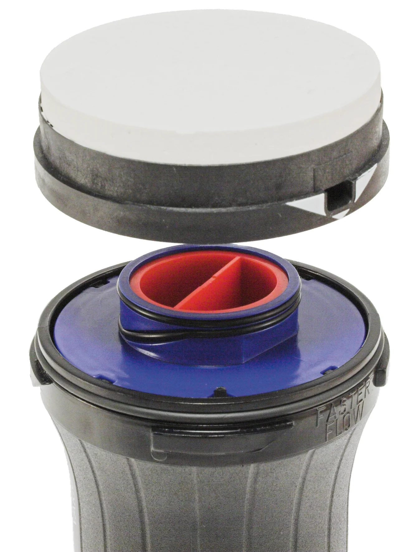 Die Keramikscheibe kann im Modus “LONGER LIFE” bei trübem Wasser zugeschaltet werden. Im “FASTER FLOW” Modus wird der Glasfaserfilter direkt angeströmt und die Pumpleistung auf bis zu 2 l/min erhöht.