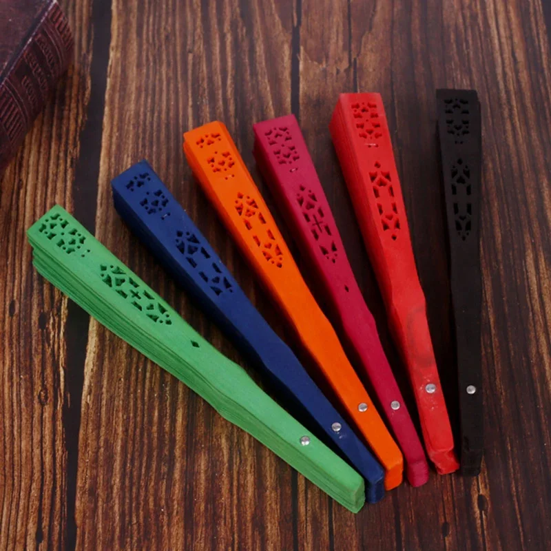 Dieser Vintage Faltfächer aus Räucherholz ist mit feinen handgeschnitzten Bambusmustern gefertigt. Das hohle Schnitzdesign verleiht ihm einen antiken Charme im klassischen chinesischen Stil.