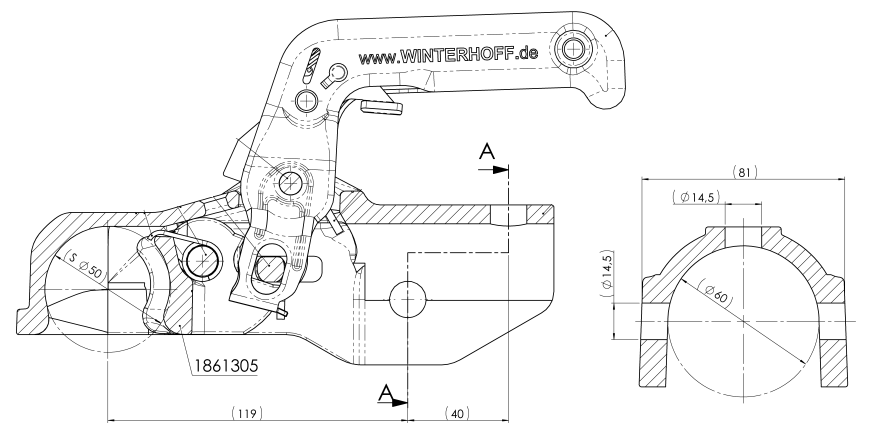 Winterhoff/Albe EM350RC – rund 60 mm – 3500 kg – gebremste Kugelkupplung