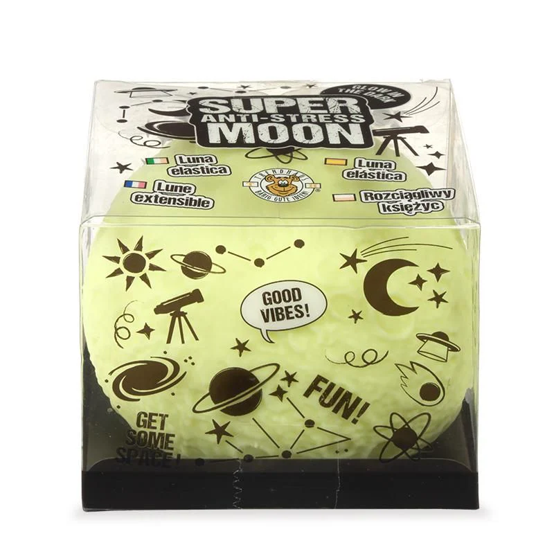 Der XXL Anti-Stress Mond ist dein nachtleuchtender Super-Mond! Mit der angenehmen Soft-Touch-Haptik und der coolen Mond-Oberflächenstruktur ist er perfekt zum Drücken, Knautschen, Spielen, als Deko oder zum Stressabbau.
