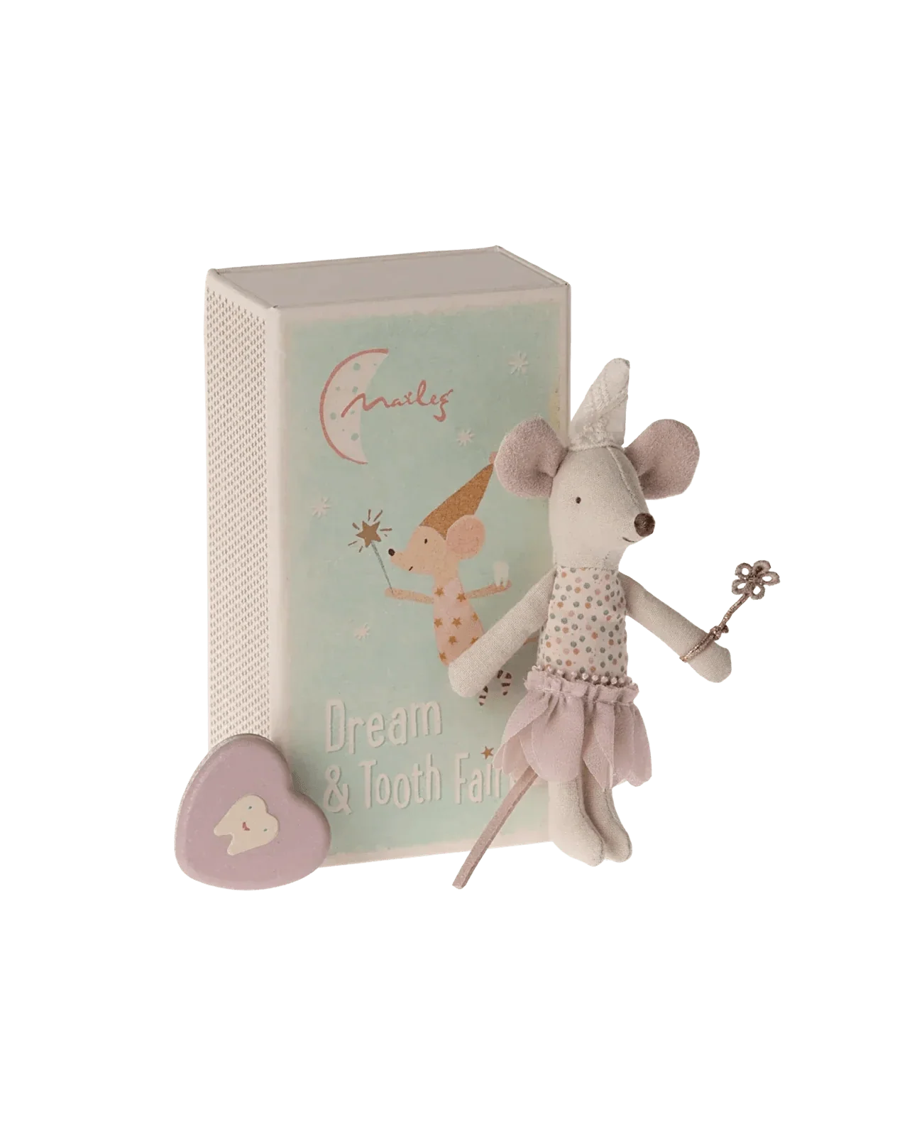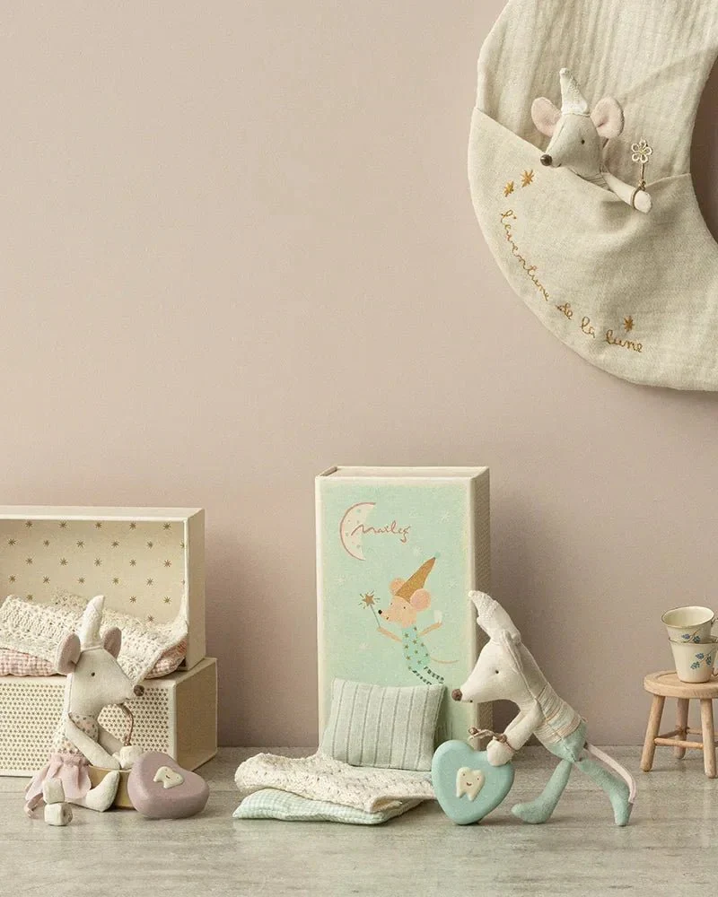 Die Zahnfeenmaus von Maileg ist ein zauberhaftes Sammlerstück aus hochwertigem Baumwollstoff. Sie kommt in einer Streichholzschachtel, ideal für Kinder ab 3 Jahren.