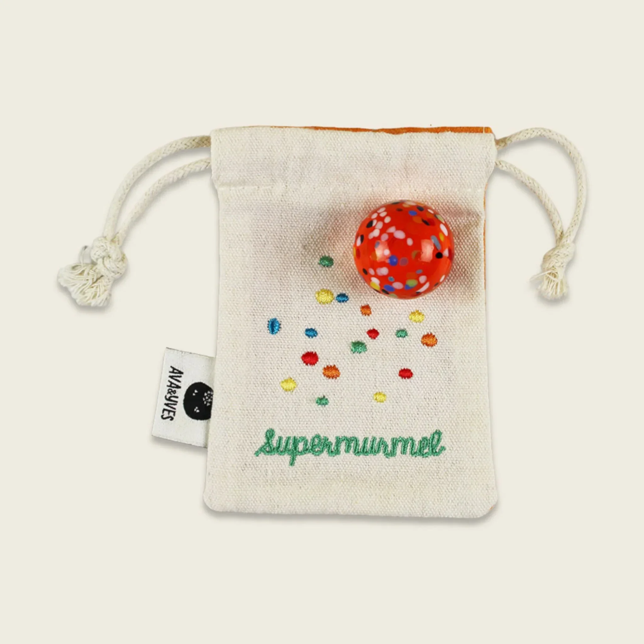 ava&yves – Supermurmel Orange aus Muranoglas – Konfetti-Steinchen in Stoffbeutel