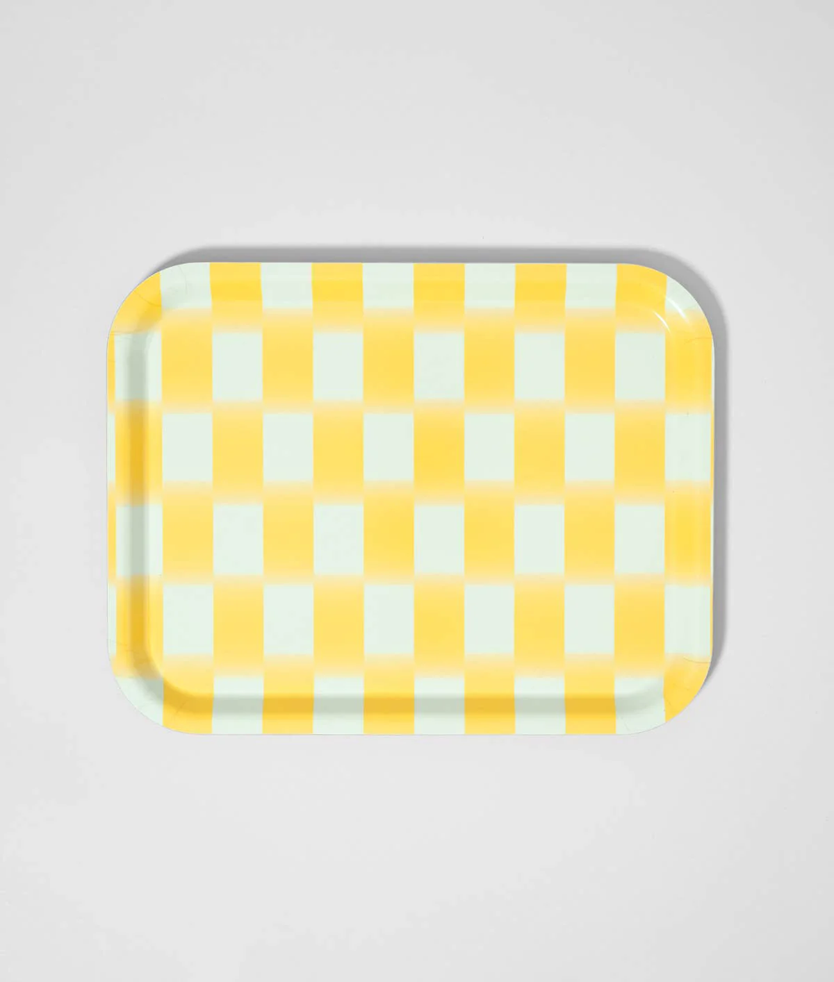 YELLOW BLUR CHECK Gelbes rechteckiges Serviertablett aus Birke